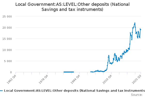 Download this time seriesLocal Government:AS:LEVEL:Other deposits (National Savings and tax instruments)