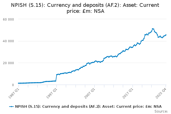 Download this time seriesNPISH (S.15): Currency and deposits (AF.2): Asset: Current price: £m: NSA