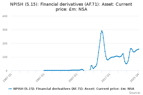 Download this time seriesNPISH (S.15): Financial derivatives (AF.71): Asset: Current price: £m: NSA