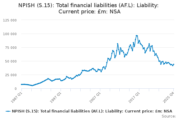 Download this time seriesNPISH (S.15): Total financial liabilities (AF.L): Liability: Current price: £m: NSA