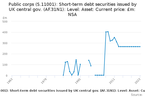 Download this time seriesPublic corps (S.11001): Short-term debt securities issued by UK central gov. (AF.31N1): Level: Asset: Current price: £m: NSA