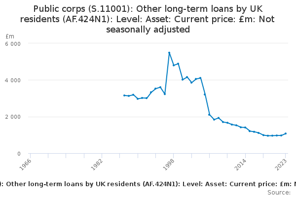 Download this time seriesPublic corps (S.11001): Other long-term loans by UK residents (AF.424N1): Level: Asset: Current price: £m: Not seasonally adjusted