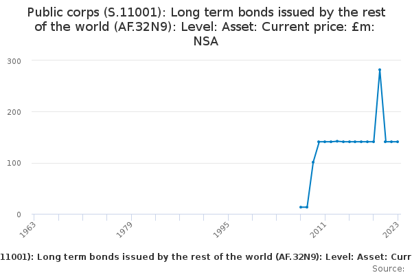 Download this time seriesPublic corps (S.11001): Long term bonds issued by the rest of the world (AF.32N9): Level: Asset: Current price: £m: NSA