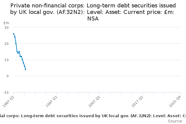 Download this time seriesPrivate non-financial corps: Long-term debt securities issued by UK local gov. (AF.32N2): Level: Asset: Current price: £m: NSA