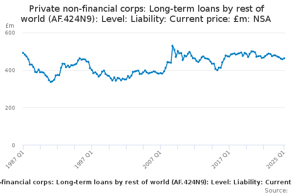 Download this time seriesPrivate non-financial corps: Long-term loans by rest of world (AF.424N9): Level: Liability: Current price: £m: NSA