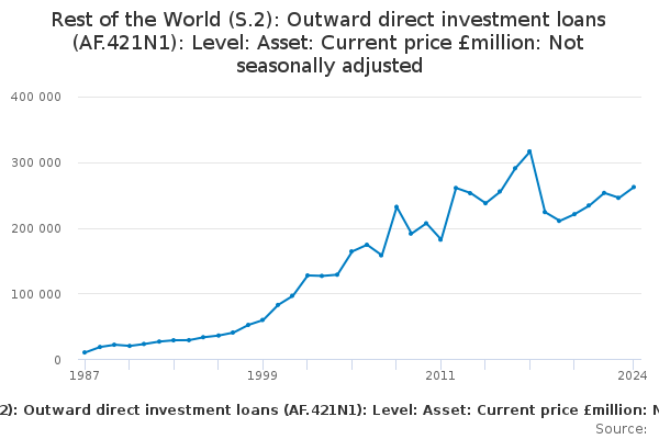 Download this time seriesRest of the World (S.2): Outward direct investment loans (AF.421N1): Level: Asset: Current price £million: Not seasonally adjusted
