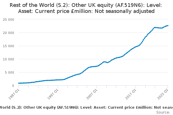 Download this time seriesRest of the World (S.2): Other UK equity (AF.519N6): Level: Asset: Current price £million: Not seasonally adjusted