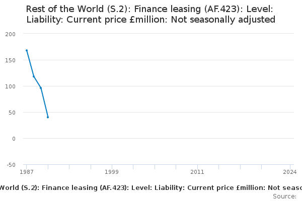 Download this time seriesRest of the World (S.2): Finance leasing (AF.423): Level: Liability: Current price £million: Not seasonally adjusted