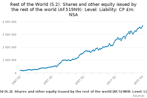 Download this time seriesRest of the World (S.2): Shares and other equity issued by the rest of the world (AF.519N9): Level: Liability: CP £m: NSA