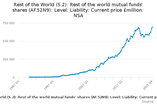 Download this time seriesRest of the World (S.2): Rest of the world mutual funds' shares (AF.52N9): Level: Liability: Current price £million: NSA
