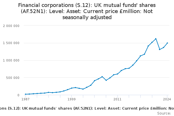 Download this time seriesFinancial corporations (S.12): UK mutual funds' shares (AF.52N1): Level: Asset: Current price £million: Not seasonally adjusted