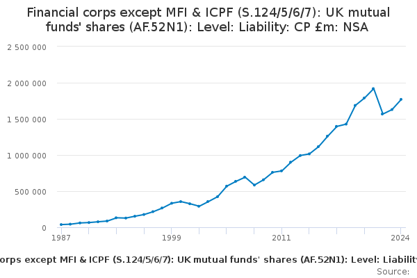 Download this time seriesFinancial corps except MFI & ICPF (S.124/5/6/7): UK mutual funds' shares (AF.52N1): Level: Liability: CP £m: NSA