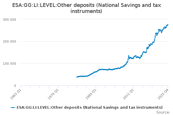 Download this time seriesESA:GG:LI:LEVEL:Other deposits (National Savings and tax instruments)
