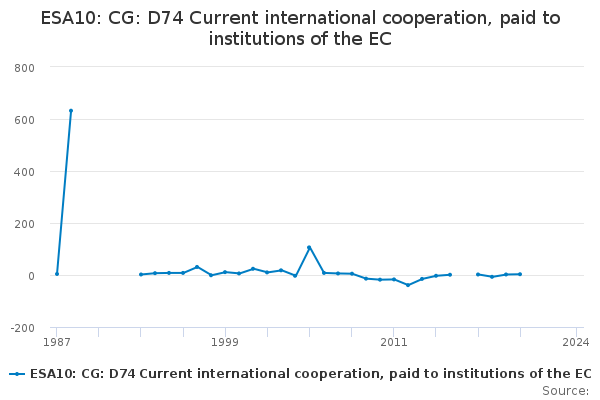Download this time seriesESA10: CG: D74 Current international cooperation, paid to institutions of the EC