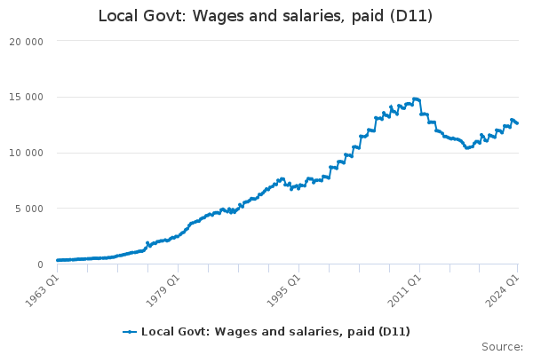 Download this time seriesLocal Govt: Wages and salaries, paid (D11)