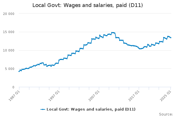 Download this time seriesLocal Govt: Wages and salaries, paid (D11)