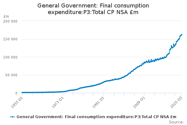 Download this time seriesGeneral Government: Final consumption expenditure:P3:Total CP NSA £m