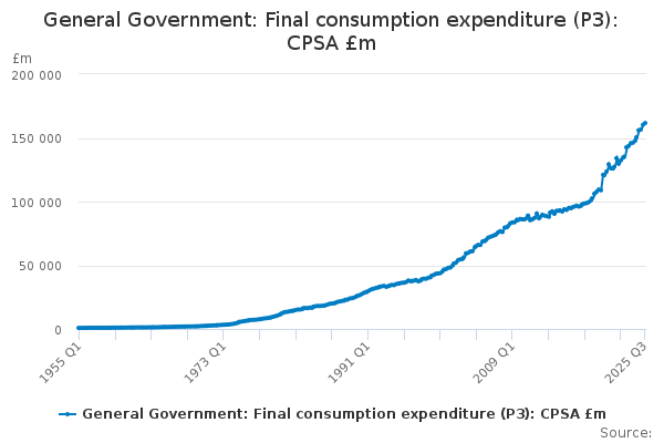Download this time seriesGeneral Government: Final consumption expenditure (P3): CPSA £m