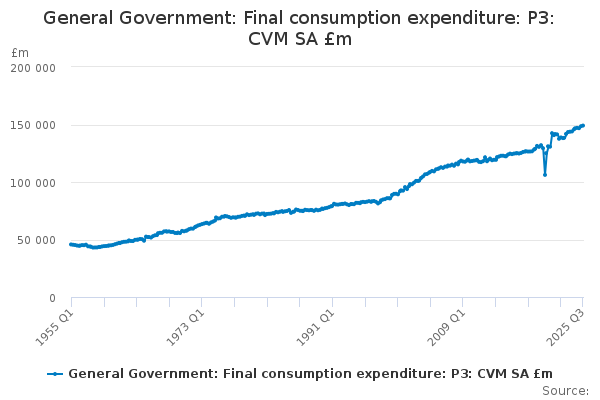 Download this time seriesGeneral Government: Final consumption expenditure: P3: CVM SA £m