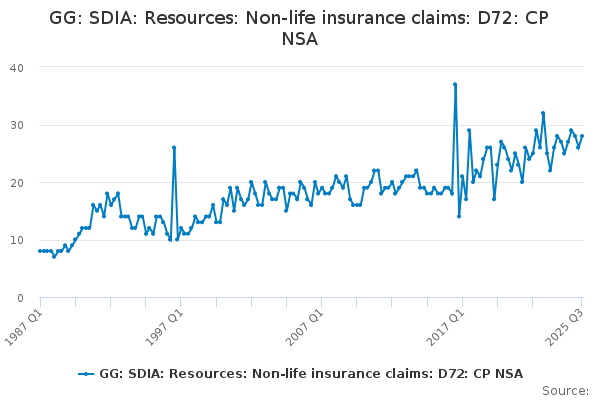 Download this time seriesGG: SDIA: Resources: Non-life insurance claims: D72: CP NSA