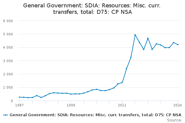 Download this time seriesGeneral Government: SDIA: Resources: Misc. curr. transfers, total: D75: CP NSA