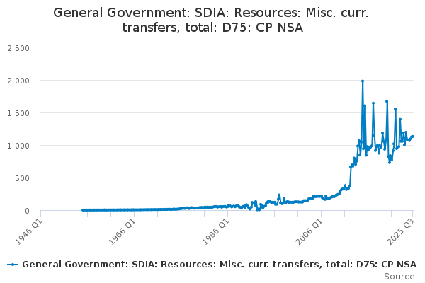 Download this time seriesGeneral Government: SDIA: Resources: Misc. curr. transfers, total: D75: CP NSA
