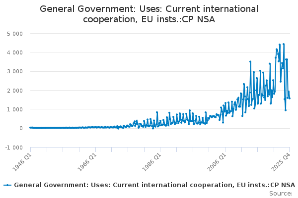Download this time seriesGeneral Government: Uses: Current international cooperation, EU insts.:CP NSA