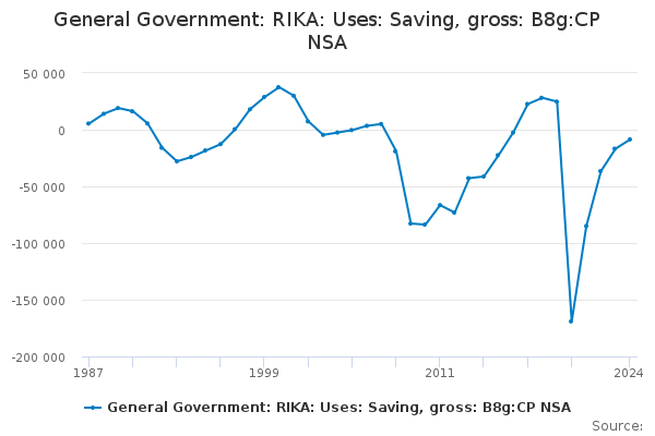 Download this time seriesGeneral Government: RIKA: Uses: Saving, gross: B8g:CP NSA