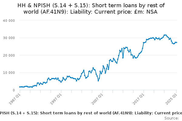 Download this time seriesHH & NPISH (S.14 + S.15): Short term loans by rest of world (AF.41N9): Liability: Current price: £m: NSA