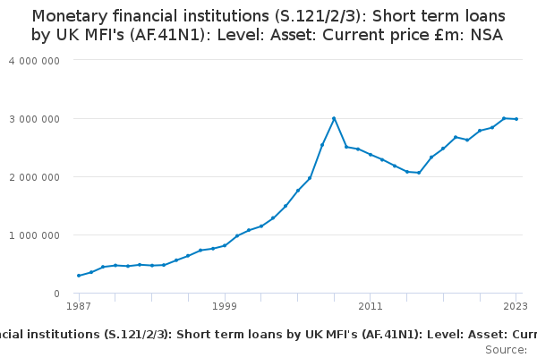 Download this time seriesMonetary financial institutions (S.121/2/3): Short term loans by UK MFI's (AF.41N1): Level: Asset: Current price £m: NSA
