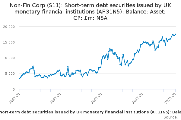 Download this time seriesNon-Fin Corp (S11): Short-term debt securities issued by UK monetary financial institutions (AF.31N5): Balance: Asset: CP: £m: NSA