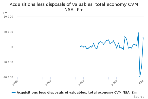 Download this time seriesAcquisitions less disposals of valuables: total economy CVM NSA, £m