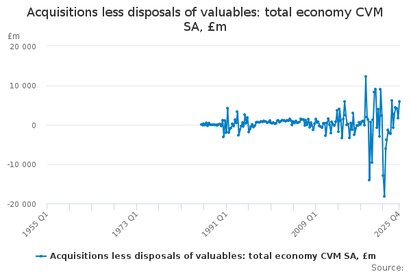 Download this time seriesAcquisitions less disposals of valuables: total economy CVM SA, £m
