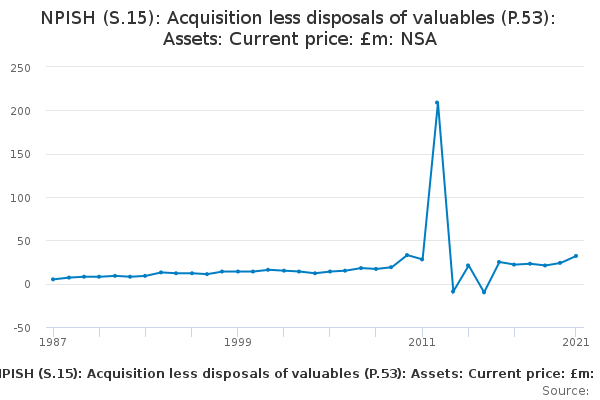 Download this time seriesNPISH (S.15): Acquisition less disposals of valuables (P.53): Assets: Current price: £m: NSA