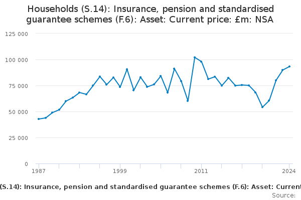 Download this time seriesHouseholds (S.14): Insurance, pension and standardised guarantee schemes (F.6): Asset: Current price: £m: NSA