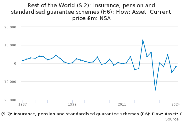 Download this time seriesRest of the World (S.2): Insurance, pension and standardised guarantee schemes (F.6): Flow: Asset: Current price £m: NSA