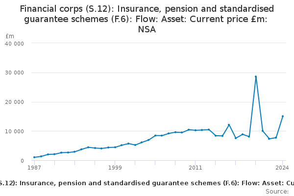 Download this time seriesFinancial corps (S.12): Insurance, pension and standardised guarantee schemes (F.6): Flow: Asset: Current price £m: NSA