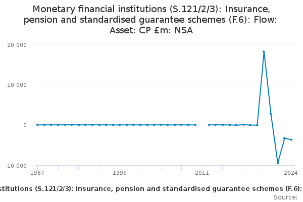 Download this time seriesMonetary financial institutions (S.121/2/3): Insurance, pension and standardised guarantee schemes (F.6): Flow: Asset: CP £m: NSA