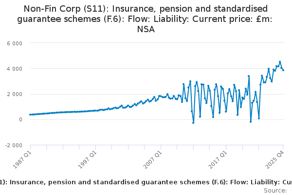 Download this time seriesNon-Fin Corp (S11): Insurance, pension and standardised guarantee schemes (F.6): Flow: Liability: Current price: £m: NSA