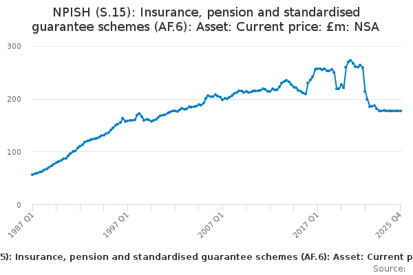 Download this time seriesNPISH (S.15): Insurance, pension and standardised guarantee schemes (AF.6): Asset: Current price: £m: NSA