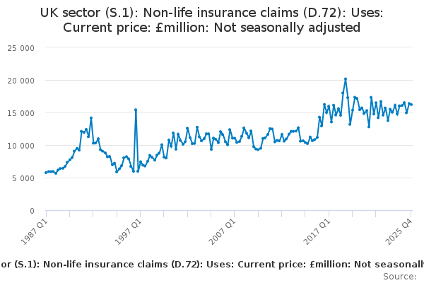 Download this time seriesUK sector (S.1): Non-life insurance claims (D.72): Uses: Current price: £million: Not seasonally adjusted