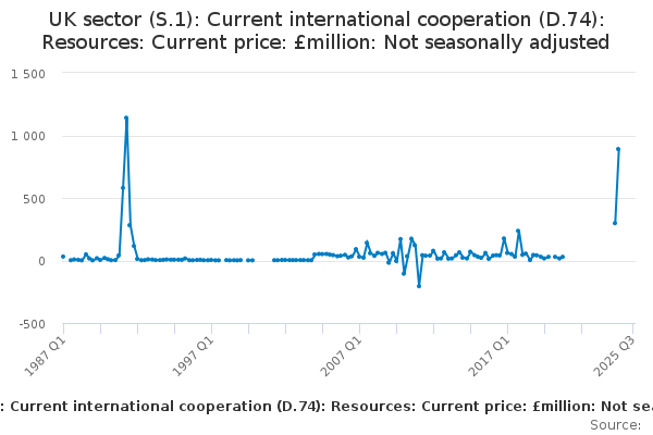 Download this time seriesUK sector (S.1): Current international cooperation (D.74): Resources: Current price: £million: Not seasonally adjusted