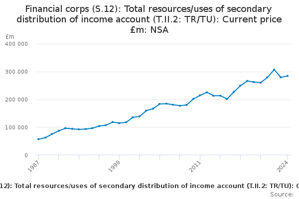 Download this time seriesFinancial corps (S.12): Total resources/uses of secondary distribution of income account (T.II.2: TR/TU): Current price £m: NSA