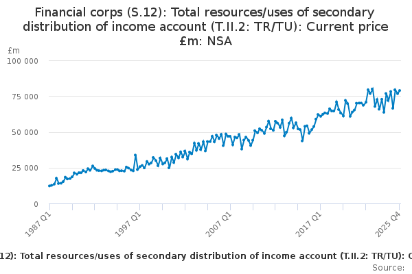 Download this time seriesFinancial corps (S.12): Total resources/uses of secondary distribution of income account (T.II.2: TR/TU): Current price £m: NSA