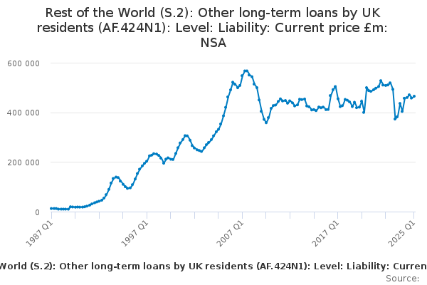 Download this time seriesRest of the World (S.2): Other long-term loans by UK residents (AF.424N1): Level: Liability: Current price £m: NSA