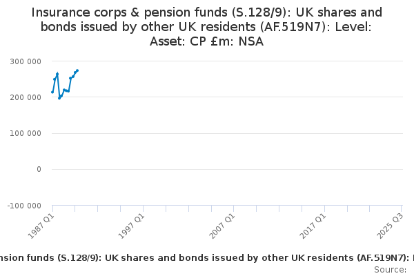 Download this time seriesInsurance corps & pension funds (S.128/9): UK shares and bonds issued by other UK residents (AF.519N7): Level: Asset: CP £m: NSA
