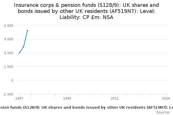 Download this time seriesInsurance corps & pension funds (S128/9): UK shares and bonds issued by other UK residents (AF519N7): Level: Liability: CP £m: NSA