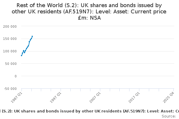 Download this time seriesRest of the World (S.2): UK shares and bonds issued by other UK residents (AF.519N7): Level: Asset: Current price £m: NSA