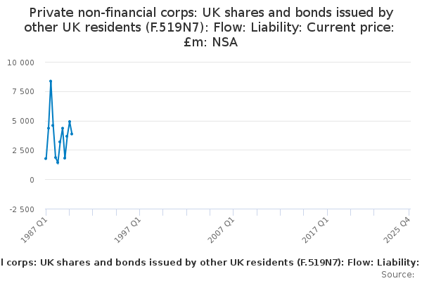 Download this time seriesPrivate non-financial corps: UK shares and bonds issued by other UK residents (F.519N7): Flow: Liability: Current price: £m: NSA