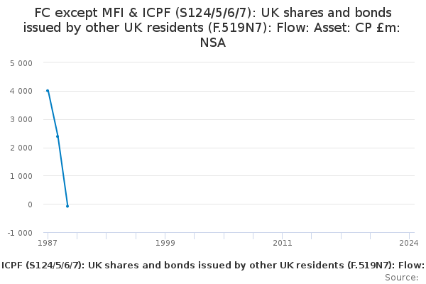 Download this time seriesFC except MFI & ICPF (S124/5/6/7): UK shares and bonds issued by other UK residents (F.519N7): Flow: Asset: CP £m: NSA